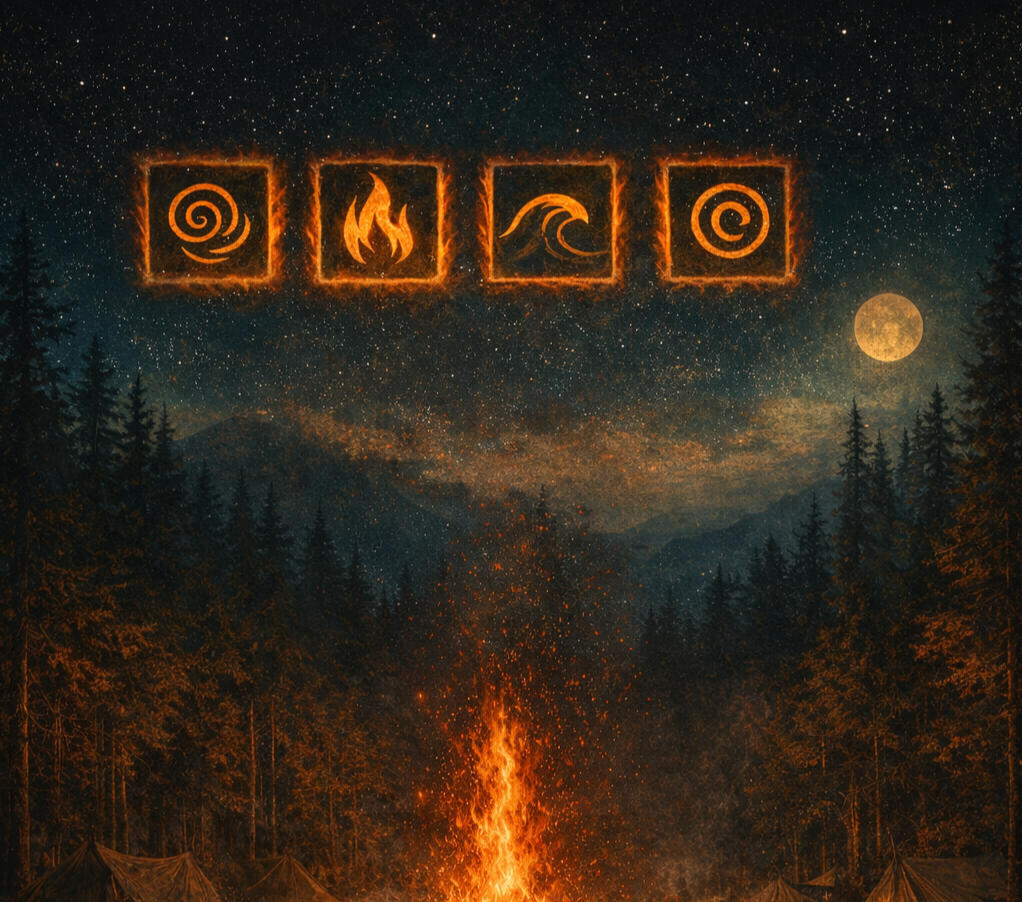 Primitive camping. Elemental rituals. Shared fire with 40 men.You leave lighter, clearer, and more grounded than when you arrived.